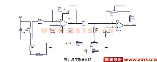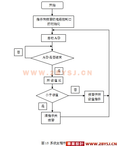 这个系统是由单片机、AD转换器、湿敏电容和指示报警电路以及显示电路组成。首先环境中的湿度经过湿敏电容转变为电流信号,接着通过转换电路将其转换为在0-100%时输出0-5V的电压信号。再经过ADC0809将其转变为数字信号送入单片机,有单片机对数字信号进行运算比较,当比较后比欲设值大时置位相应的指示灯并启动报警电路报警。本设计采用的电容式湿度敏感元件,其特点是尺寸小、响应时间快、线性度好、温度系数小、可靠性高和稳定性好。在相对湿度为0%-100%RH范围内,电容量由162pF变到200pF时,其误差不大于±2%RH,而且响应时间小于5s,温度系数为0.04pF/℃,符合设计要求,而且成本不高。