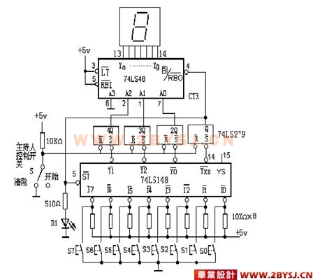 (1)抢答器同时供8名选手或8个代表队比赛,分别用8个按钮S0 ~ S7表示。
