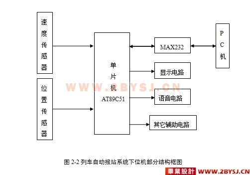 该系统整体是主从分布式系统。下位机由AT89C51单片机系统组成,霍尔传感器检测列车行驶里程,单片机进行脉冲计数处理后,通过RS—232串行通信接口发送到上位机。上位机为PC机,负责列车行驶信息的显示及到站音视频信息的自动播放,通过访问车次信息数据库,完成多媒体自动报站任务。通过对系统装置的调试表明,本论文研制的旅客列车自动报站多媒体系统能够满足旅客在乘车过程中对列车行驶信息的需求,具有良好的实用价值和应用前景。