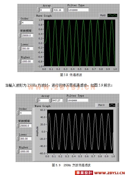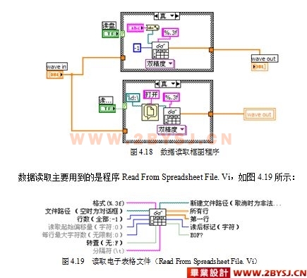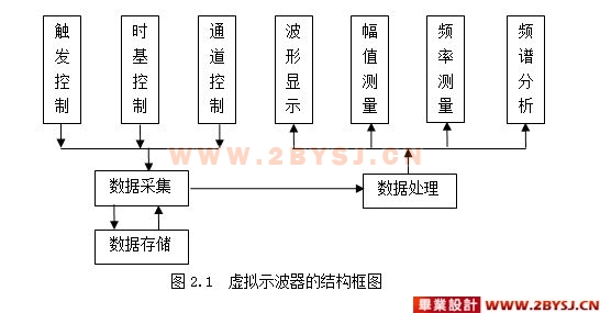 (4) 是本文的关键部分,主要介绍了虚拟示波器的各个功能模块的具体设计方法,包括数据采集、参数测量、频谱分析、滤波和波形存储及读取等。