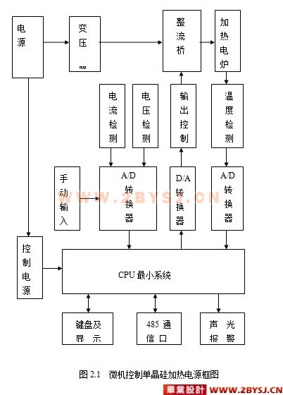 细的设计说明。微机控制单晶硅加热电源框图如图2.1所示。