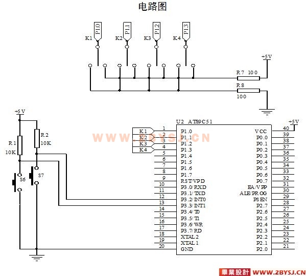 系统共有4 个两位的LED数码管,分别放置在模拟交通灯控制板上的四个路口。