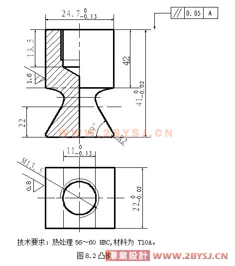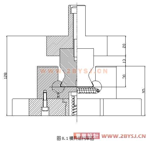 再根据所选材料和厚度及性质经过计算分析完成该模具的毛坯、弯曲力、回弹值、凸、凹模间隙等的设计计算;选出适合该模具的定位方式、卸料出件方式;设计模具的工作部分即凸、凹模的设计,选择模具的材料并确定每个零部件的加工方案;再根据模具的装配原则,完成模具的装配。装配调整好的模具,需要安装到机器上进行试模。如发现不符合要求的需加以修正,并进行再次试模,直到能正常运行并加工出合格的制品。