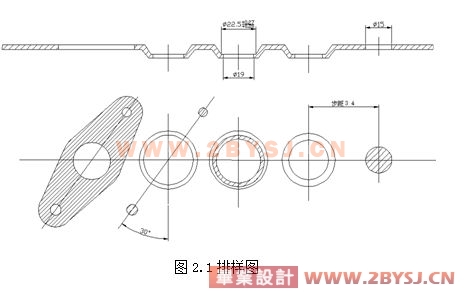 根据本零件的特点,适合采用有废料斜排的方式,这样不仅使冲出的零件达到要求,有可以尽可能大的提高材料的利用率。