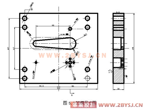 此工件只有落料和冲孔两个工序。材料为Q235-A钢,具有良好的冲压性能,适合冲裁。工件结构相对简单,有一个 的孔和5个 的孔;孔与孔、孔与边缘之间的距离也满足要求,最小壁厚为3.5mm(大端4个 的孔与 孔与R16mm外圆之间的壁厚)。工件的尺寸全部为自由公差,可看作IT14级,尺寸精度较低,普通冲裁完全能满足要求。