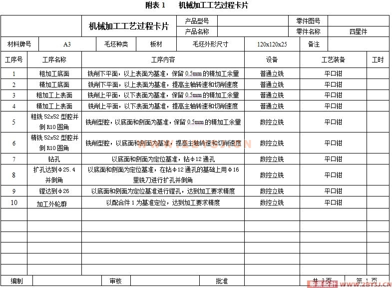 考虑到机械加工的经济性,我选择用普通铣床加工基准面A。然后以基准面A和侧面进行定位加工上表面。由于工件外轮廓全是由曲线组成,不便于夹装和定位,我选择先加工孔和形腔。