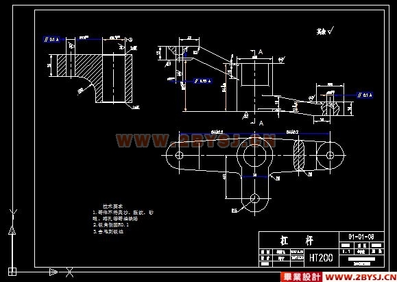 该杠杆的形状特殊、结构简单,是常见的杠杆零件。为实现起功能,对其的配合面要求较高,加工精度要求较高。因其在工作中的工作平稳,故无须进行热处理。