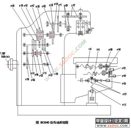 1.2、XK5040型数控铣床的主要技术参数及总传动图 3