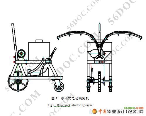 该喷雾机,由机架、贮液桶、滤网、联接头、抽吸器(小型电动泵)、连接管、喷杆、喷头等构成,抽吸是一个电动叶片泵,它经开关与电池电联接,蓄电池装于贮液桶底部。电动机的使用,相对机动式喷雾机而言,大大降低了工作时的震动和噪音,加之机载喷杆的设置,有效地消除了农药外滤伤害操作者的弊病,并且省力,高效。雾化效果好,喷雾效率高。