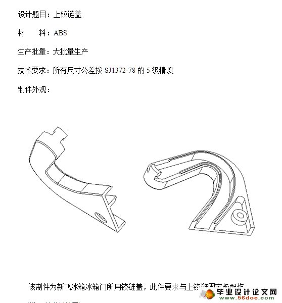 冰箱门上铰链盖注塑模具设计(含CAD零件装配图)(任务书,开题报告,中期检查表,论文说明书14800字,CAD图纸10张)