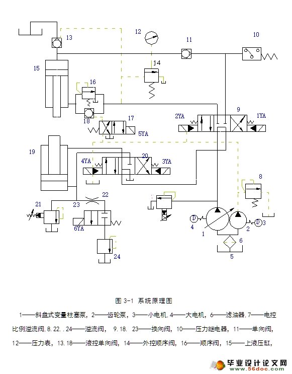 3.1 YA32─100T四柱万能液压机液压系统图 6