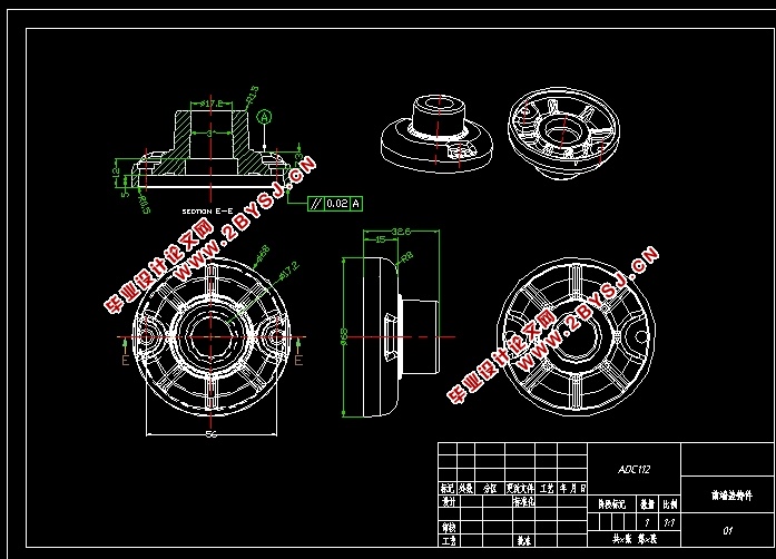 所用零件料为铝合金.牌号:ADC12,铸造精度CT5,铸件中心是一个较深的型腔,直径为17.2mm的通孔。壳体的底端有有很多加强筋,铸件平均壁厚3mm
