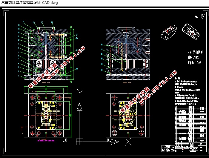 汽车前灯罩注塑模具设计(含CAD零件装配图,UG三维装配图)(论文说明书20000字,CAD图纸12张,UG三维装配图)