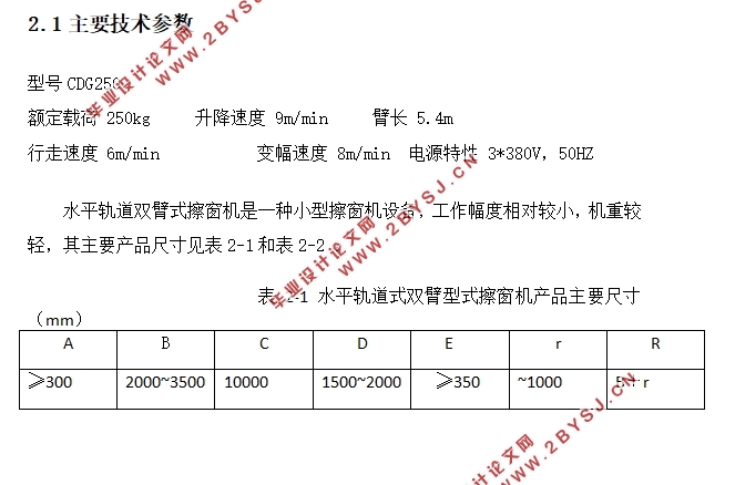 第二章 水平轨道式双臂型擦窗机结构设计 4