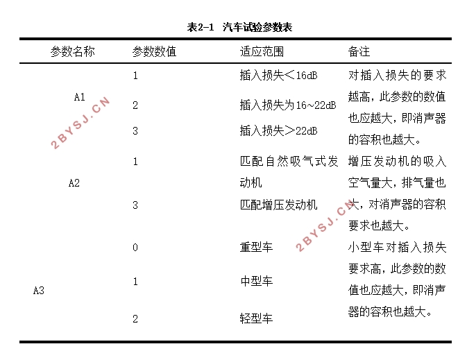 A3 0 重型车 小型车对插入损失要求高,此参数的数值也应越大,即消声器的容积也越大。