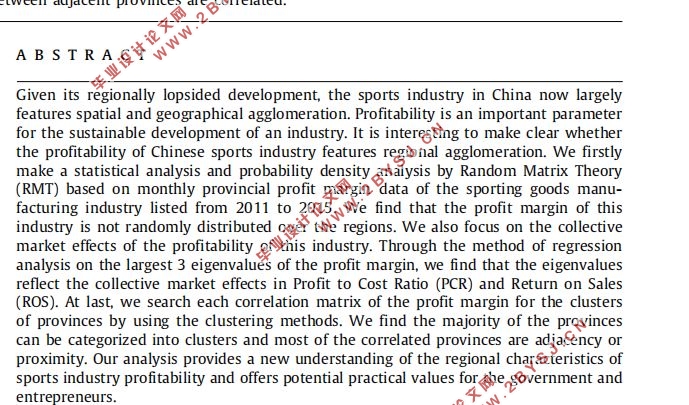 关键词:经济物理学、体育产业、盈利能力、随机矩阵理论