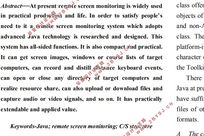 基于JAVA的远程屏幕监控系统的设计与实现(中文5000字,英文PDF)
